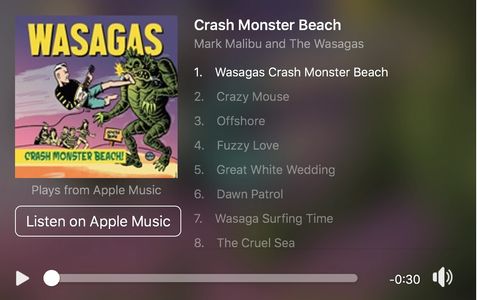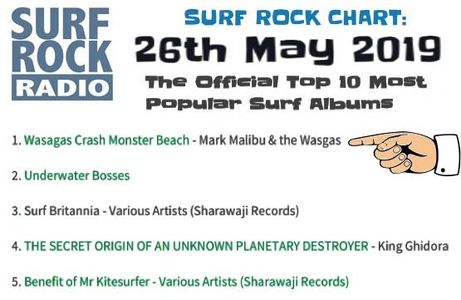 Mark Malibu & the Wasagas new LP Crash Monster Beach on Sharawaji Records is #1 in the charts. Thanks for all of you that buy, listen and/or request it.
