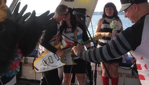 Bandmates Sharny and Wavy Davy "tied the knot" at the last Surf Cruise in Brockville Ontario. Performing the honors was none other than Mark Malibu. Maid of honor, Blue Suede Sue and the Best Monkey was Bongo 'a Go-Go !