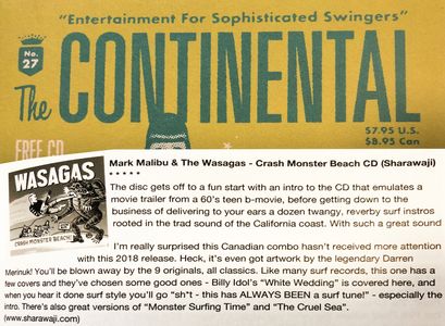 Happy to announce that Mark Malibu & the Wasagas will have an in-depth interview in issue #32 of Continental Magazine from Double Crown Records. Included is a 21-song CD packed with great surf, garage including a Wasagas song exclusive... "Ye Ye Girls".