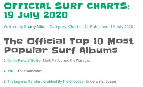 Excellent news, the new LP - "Wasagas Crash Monster Beach" enters the Surf Rock Radio charts at #1 .... and the lead off single "Offshore" is #1 on the singles charts.